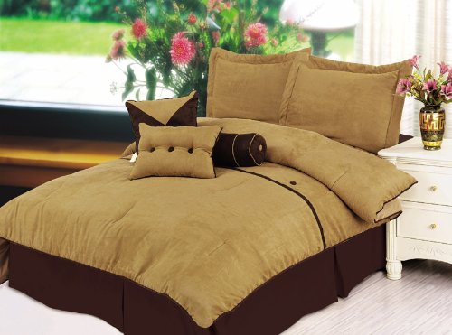7Pcs King Camel Oxford Suede Comforter Bed in a Bag Set Review