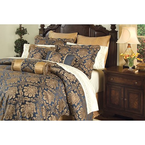 8 PC. ARDENNE GOLD / NAVY BLUE COMFORTER SET W/ MATCHING SHEETS Review