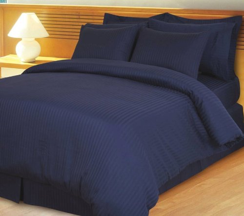 Full/Queen Comforter Set 100% Egyptian Cotton 600 Thread Count Duvet Cover Set + Comforter - Navy Blue Stripe Review
